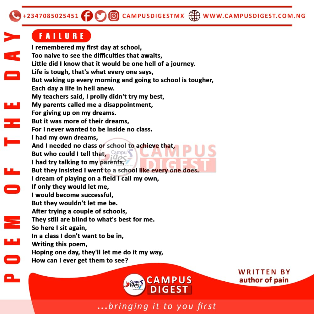 The purpose behind this journal is to enlighten the general public on the importance of our lives. We live in a world where pain is inevitable, and these pains brings discomfort to our lives, and a lot of the times the end result is suicide. It’s a shame to us, that when we see our fellow brothers and sisters going through difficulty at some point in their lives, instead of helping them, we just laugh at them and use it to mock them. A lot of times we see this life as a competition, as a battle of the fittest which is why we don’t help others. The world is gradually coming to an end and it Is not right for us to end it with our own hands; the rate of suicide is rapidly increasing thus bringing the end to the world closer. Through the many stories, poems and articles from various writers across the world that seek to explore the crucial aspects of pains, I hope the world will begin to see people for what they truly are. It’s my prayers that the world will condemn suicide. The lives of each individual no matter how rich or poor, educated or uneducated, sane or insane are God’s gift to humanity and committing suicide isn’t a way out of any problem we face in this life. Committing suicide is a great sin in life, perhaps through writing, poetry and self expression, I and other great writers will successfully destroy this act that only brings more pains to your family and loved ones instead of ending yours.