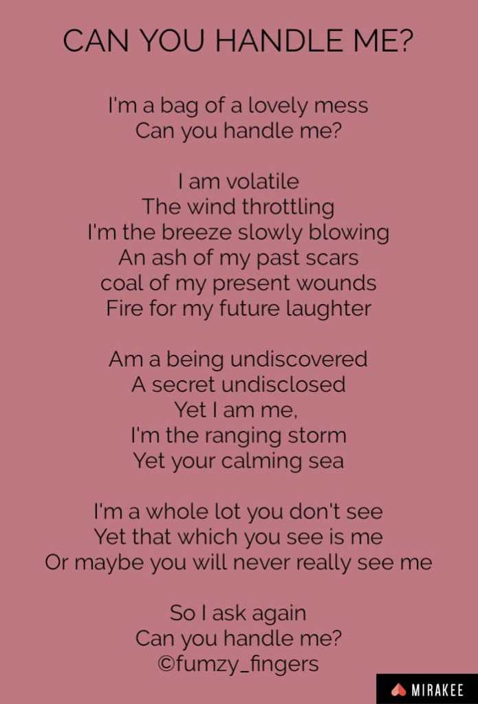 I’m a being undiscovered A secret undisclosed Yet I am me I’m the raging storm Yet your calming sea